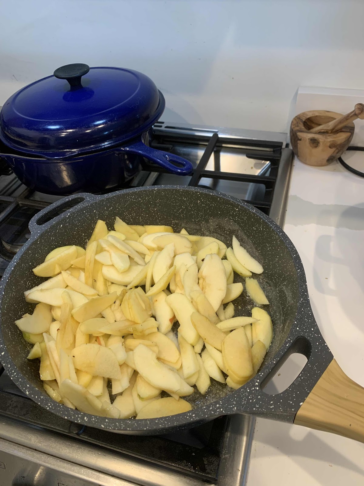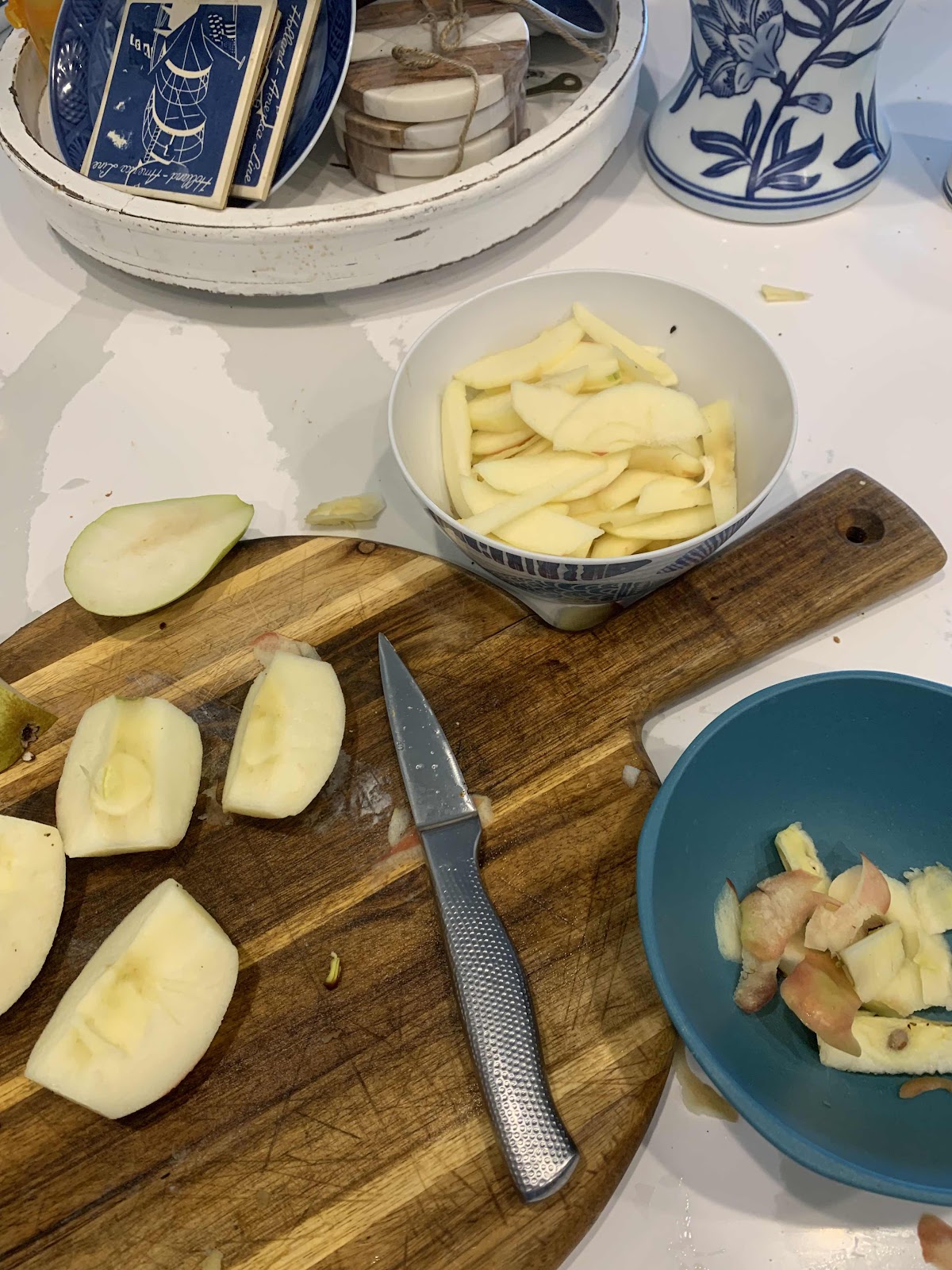 Truth be told my mother's day was celebrated, like all brunch holidays, with bagels, cream cheese and lox. I would serve it with coffee and mimosas. This Mother's Day I figured that I would try this Hello Fresh recipe because I seem to have apples that are hanging around and I'm always looking for ways to use them in easy desserts. Since, Mark picked up the traditional breakfast at the local bagel place I don't have anything to cook but this dessert.
